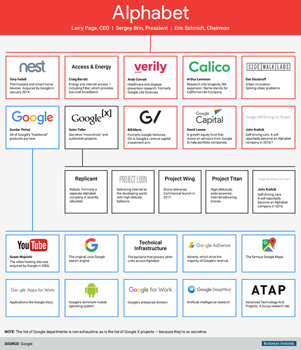 兩年前,Google 進行了重大的業(yè)務(wù)架構(gòu)調(diào)整,成立了 Alphabet 來培養(yǎng)除了 Google 意外的新業(yè)務(wù),但是從技術(shù)上來說這些公司依舊是 Google 的子公司,而現(xiàn)在這些業(yè)務(wù)將成為 Alphabet 旗下的子公司,和 Google 一樣在法律上成為平級。